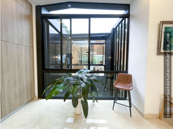 Hermosa casa de estilo contemporáneo en condominio en San Antonio de Escazú. La casa tiene mucha luz natural con grandes ventanales y ventilación cruzada.